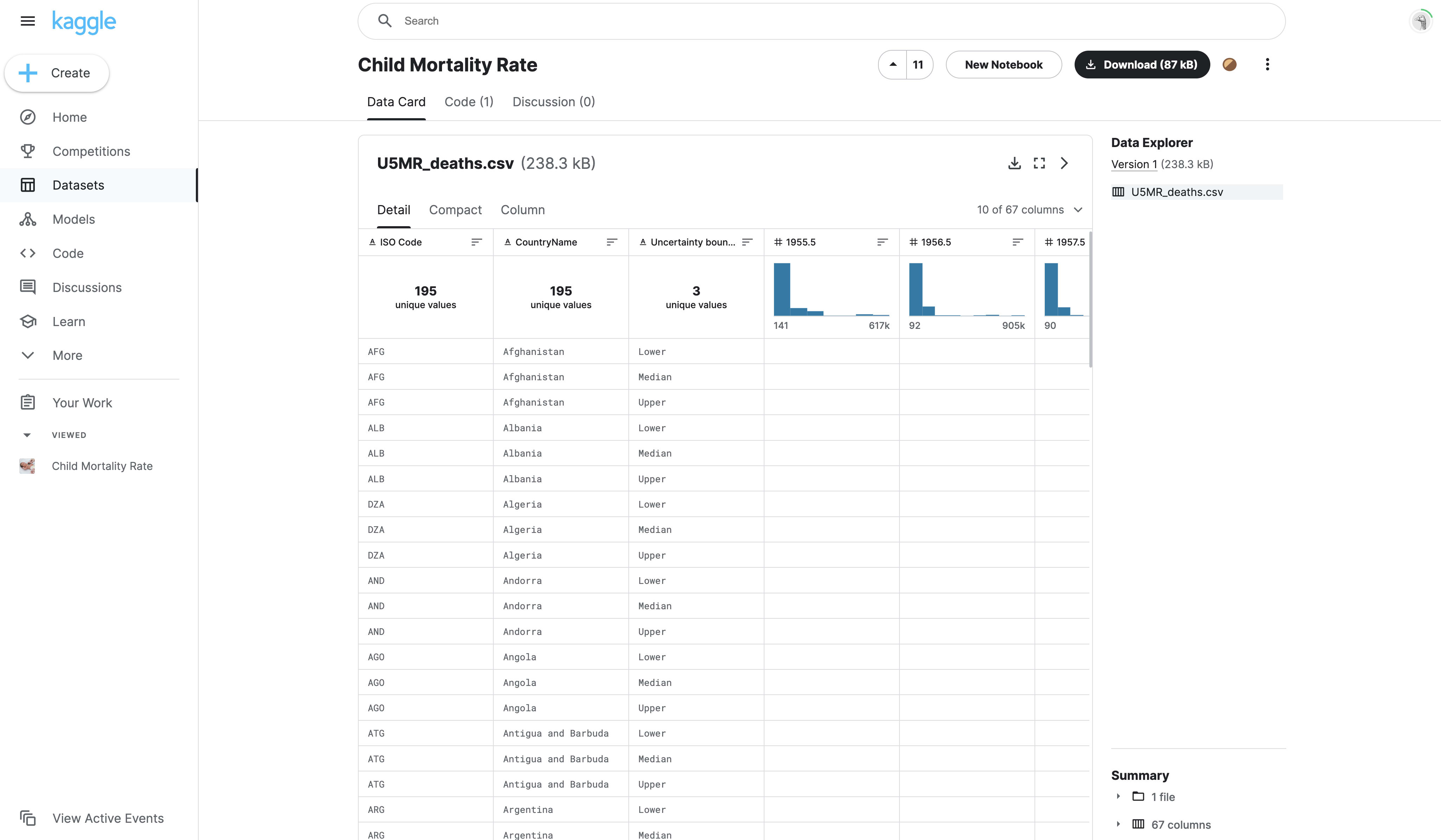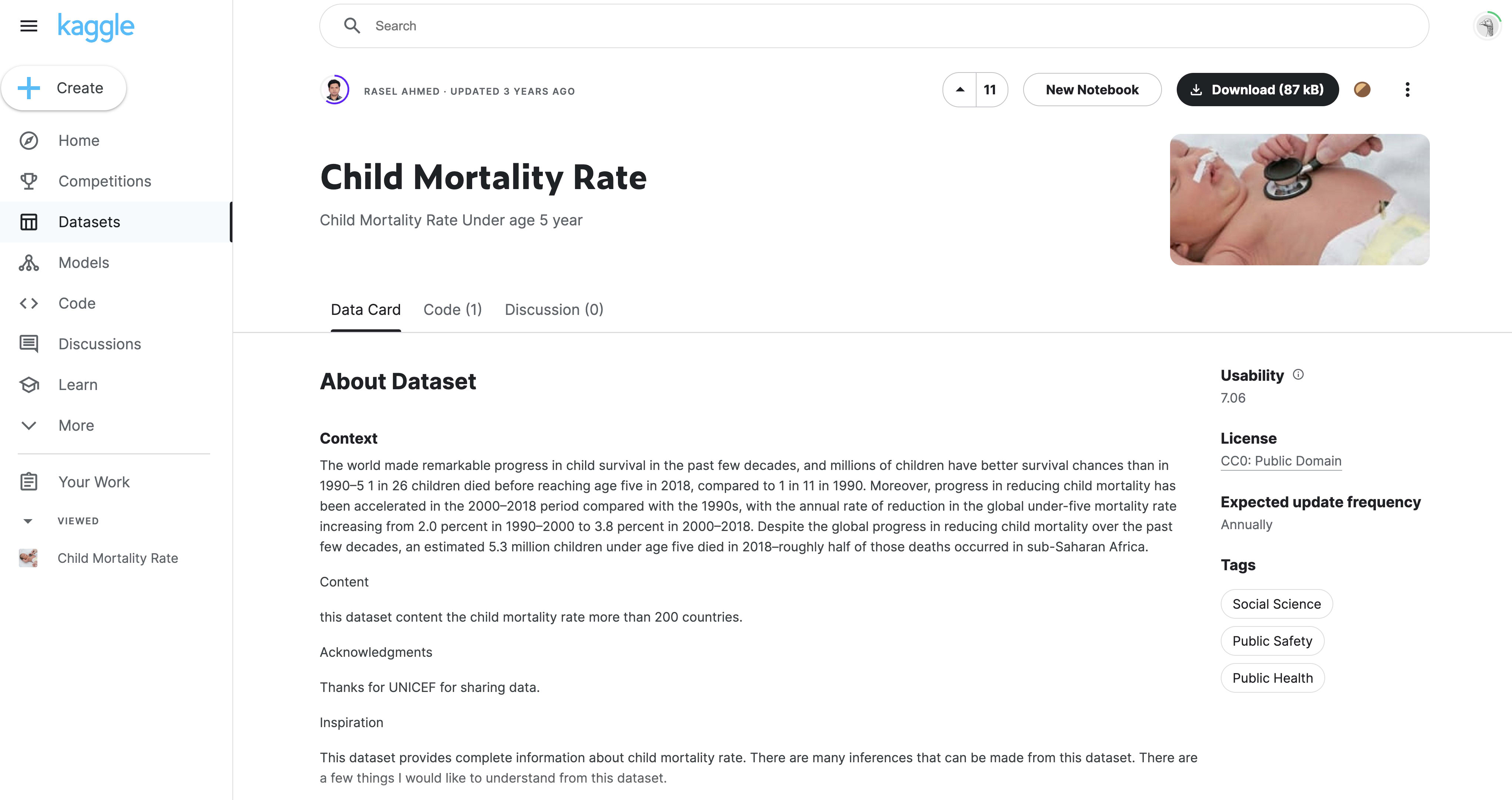 For this demo, I am using a Child Mortality Rate dataset from Kaggle created by RASEL AHMED.