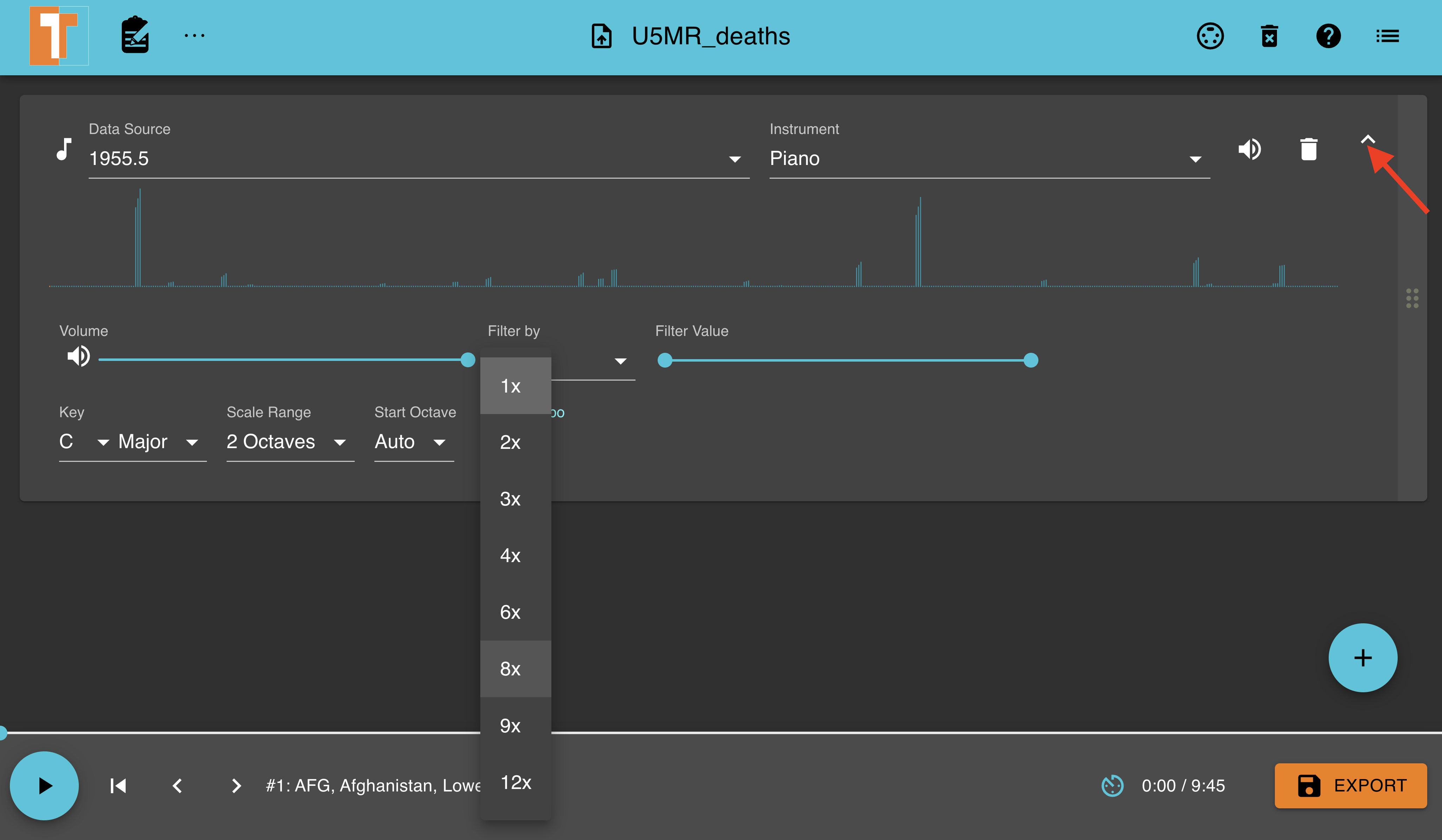 Below is the audio file generated using the 1995 column within the U5MR_deaths dataset using a 9X Track Tempo speed.